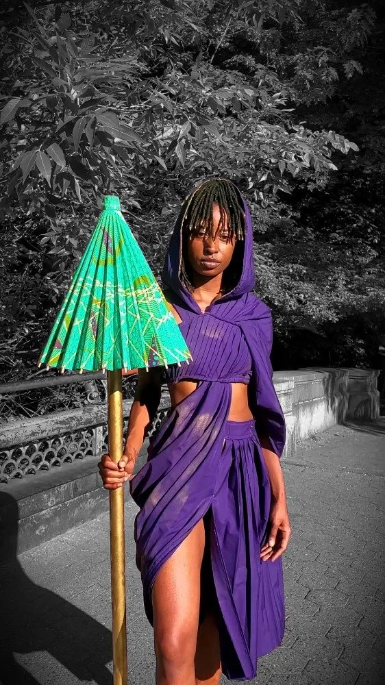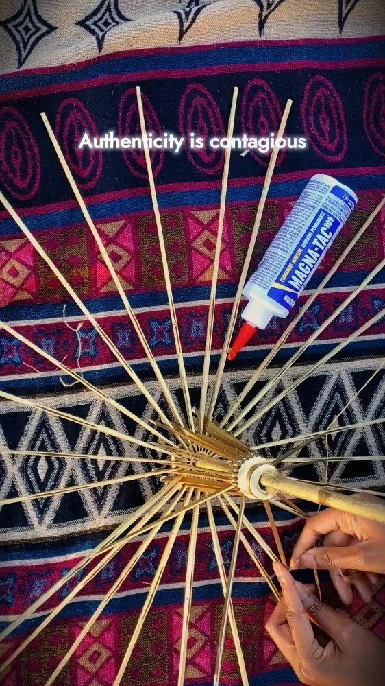 Unity is amplified through this bespoke quilt cover parasol. The bamboo frame is covered with interior paper and an exterior quilt of African cotton.